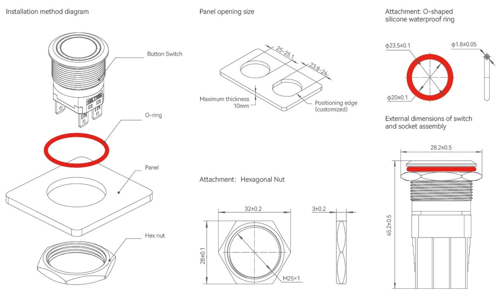 Дом / Продукция / Металлические кнопочные переключатели высокого тока / 25 мм сильноточный мгновенный/защелкивающийся металлический кнопочный переключатель
