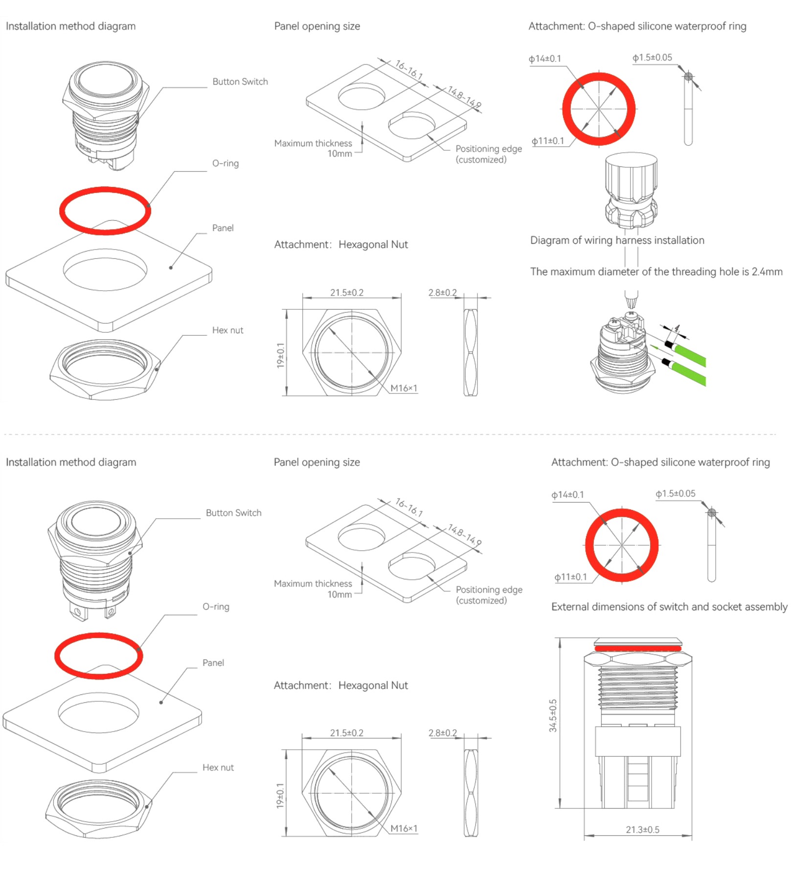 • Built-in waterproof ring Built-in waterproof ring