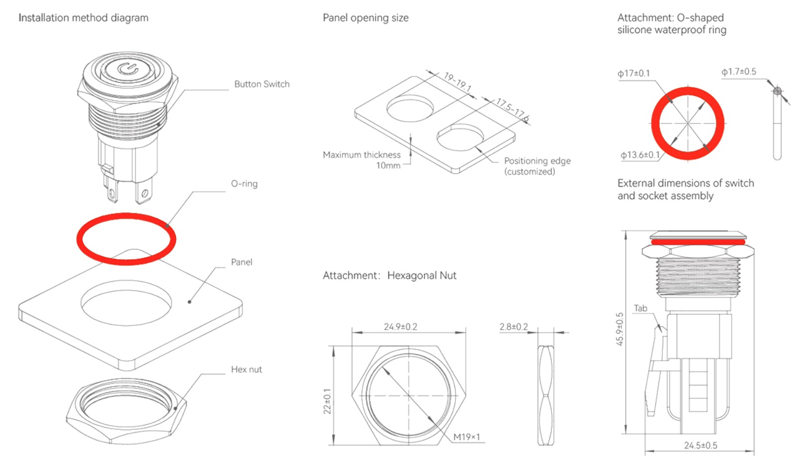• Built-in waterproof ring Built-in waterproof ring