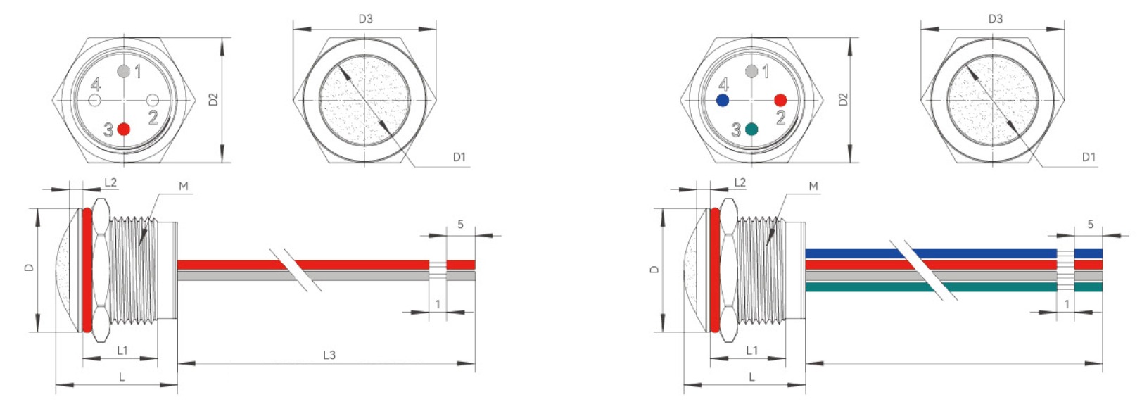 Диаметр монтажного отверстия 12 мм/16 мм/19 мм/22 мм/25 мм