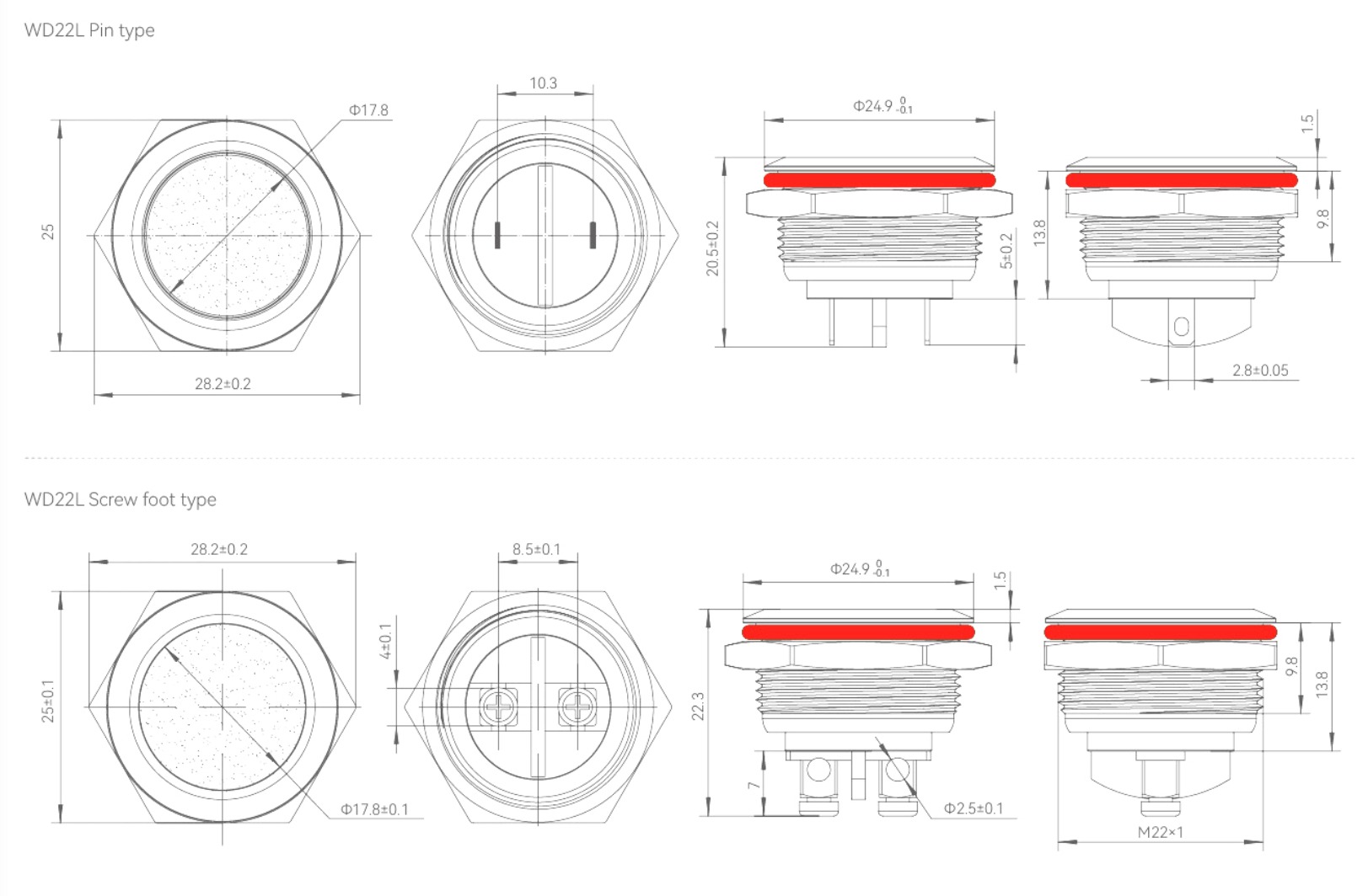 •             WD22L-P1-R-1 Металлические индикаторные лампы WD22L-P1-R-1