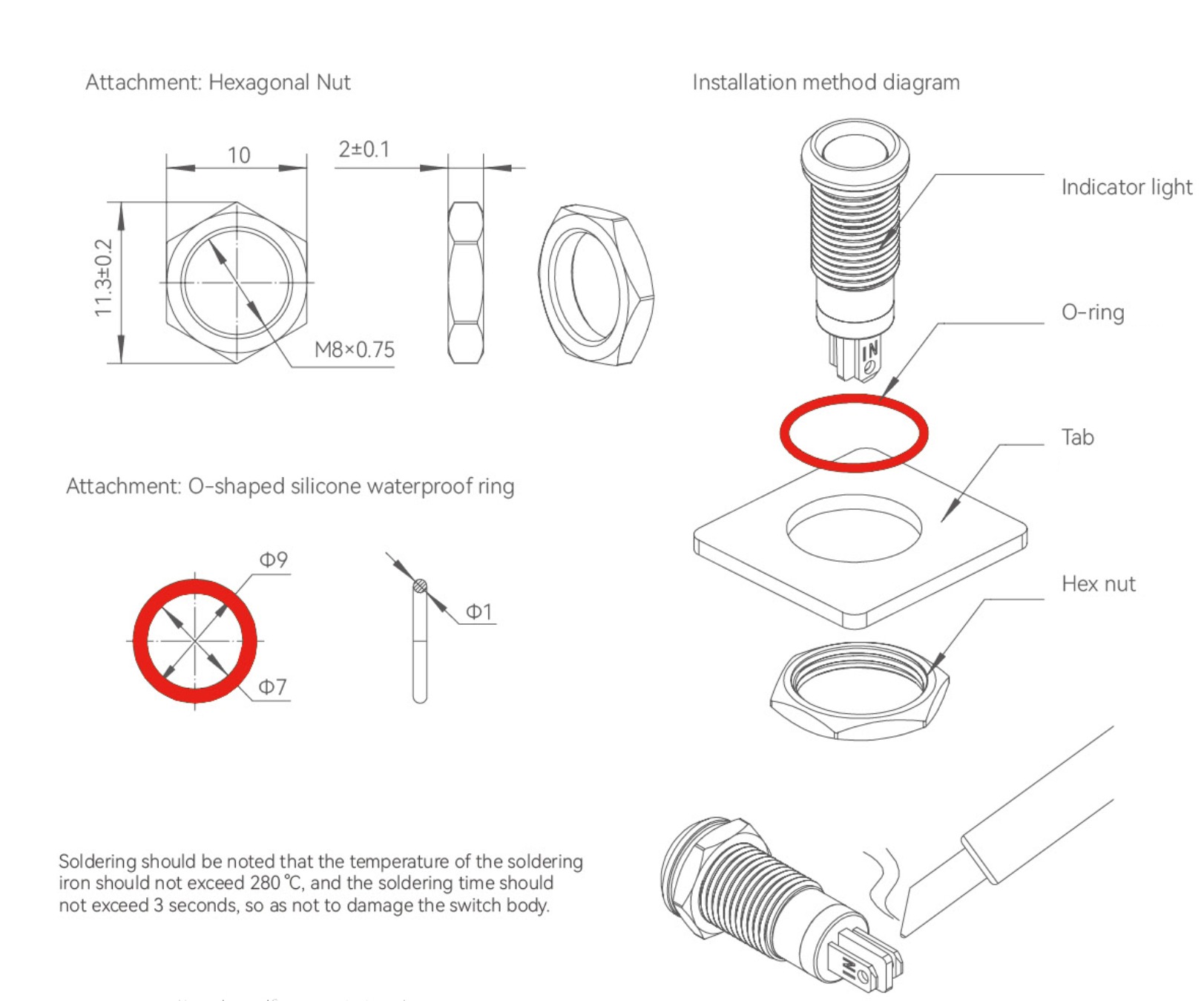 Дом / Продукция / Металлические индикаторные лампы / Металлический индикатор из нержавеющей стали 8 мм