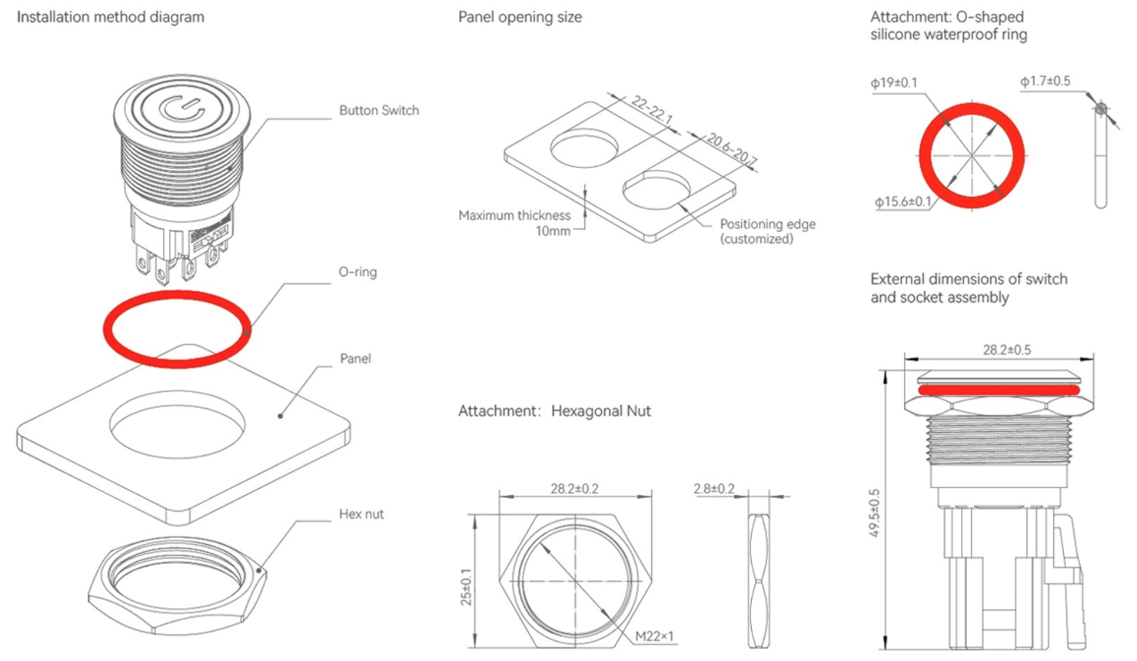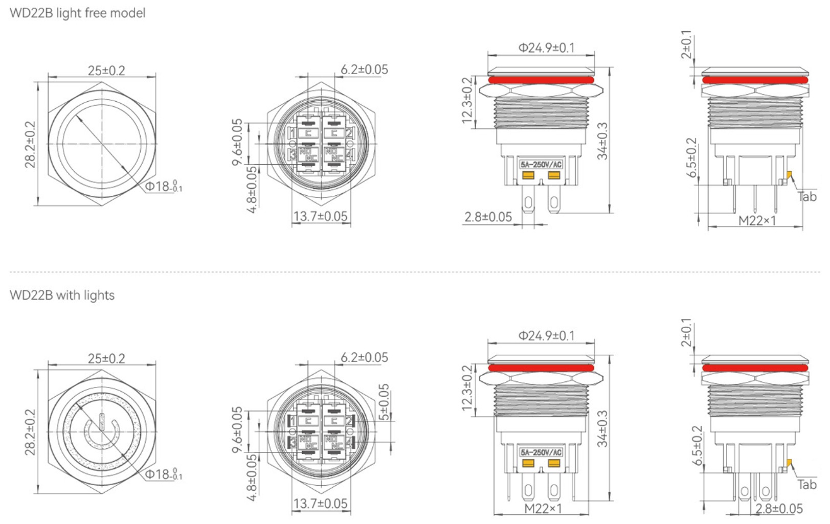 •             WD22B-P11Z-E-□□-S-1 Металлические кнопочные переключатели WD22B-P11Z-E-□□-S-1