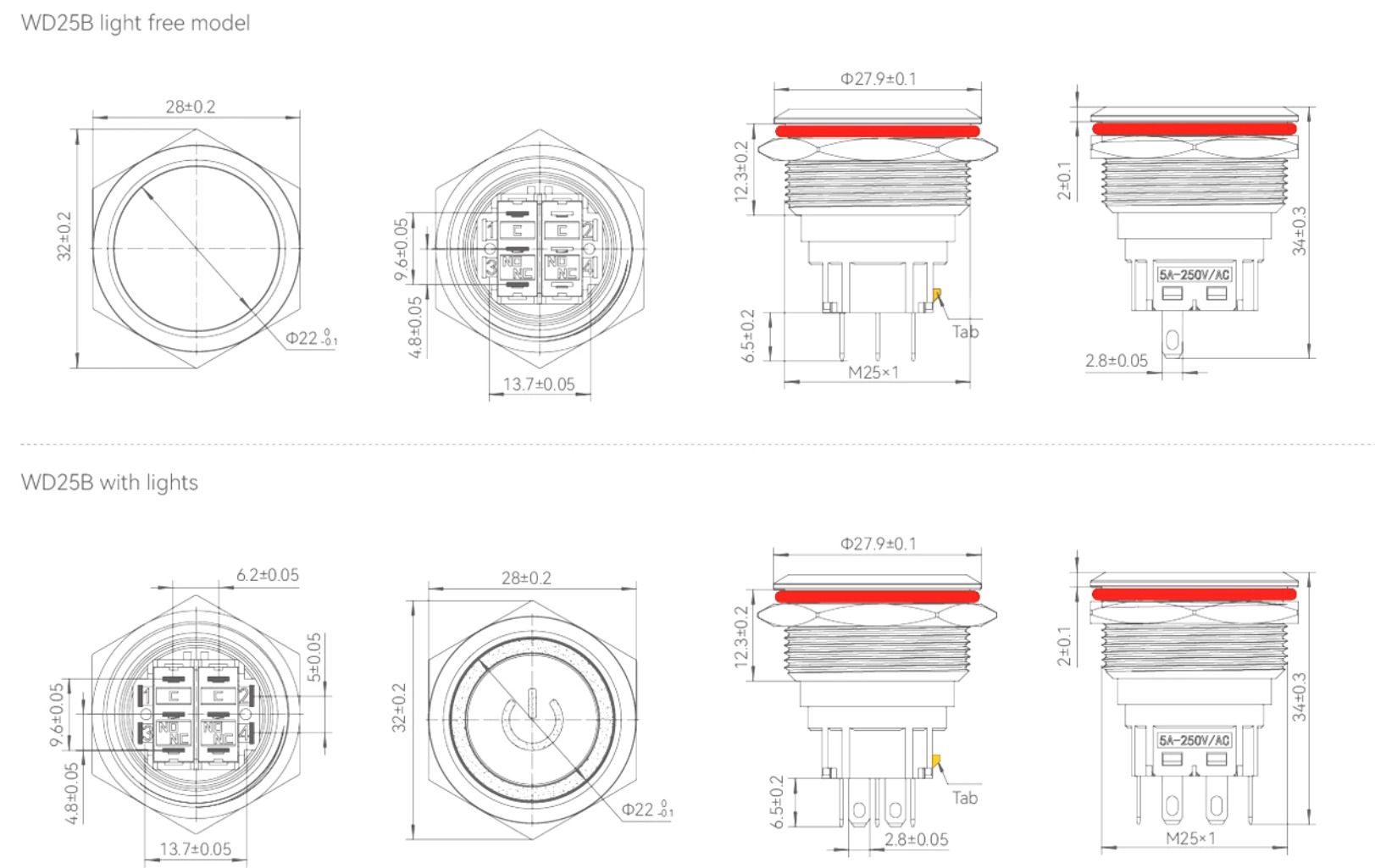 •             WD25B-P11Z-EC-□□-S-1 Металлические кнопочные переключатели WD25B-P11Z-EC-□□-S-1