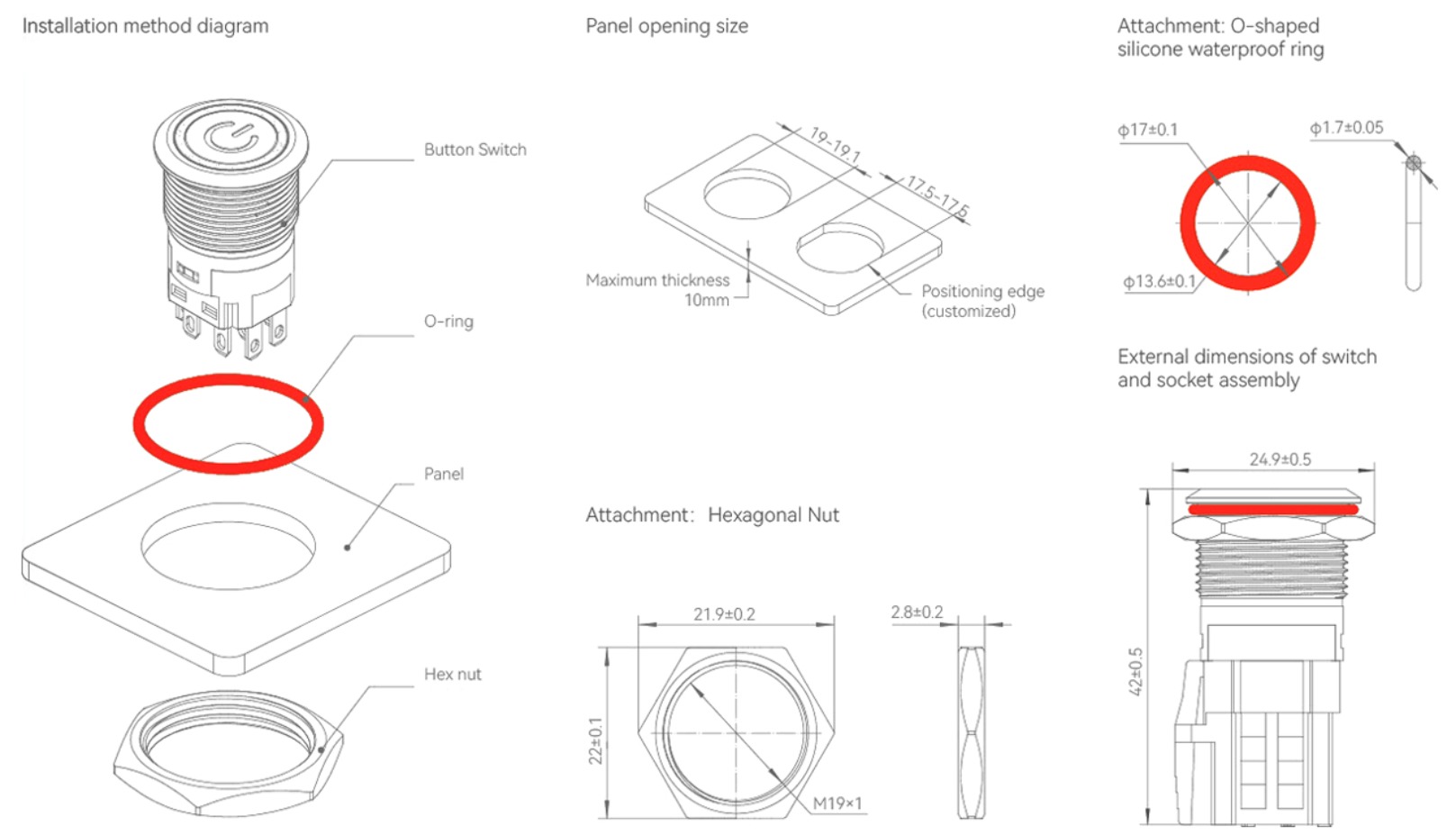 Этот водонепроницаемый металлический кнопочный переключатель толщиной 19 мм предназначен для приложений с переменным напряжением, поддерживающих обычные промышленные и автомобильные напряжения (12, 24, 48, 220 В). Его конструкция обеспечивает безопасность и надежность в различных условиях электропитания. Прочный металлический корпус, увеличенный диаметр срабатывания и самоблокирующаяся конструкция обеспечивают стабильную тактильную работу, а новая внутренняя конструкция снижает сварочную деформацию контактов. Водонепроницаемость сертифицирована на уровне IP65 и может быть повышена до IP67/IP68, что делает его пригодным для установки на открытом воздухе или в условиях повышенной влажности.